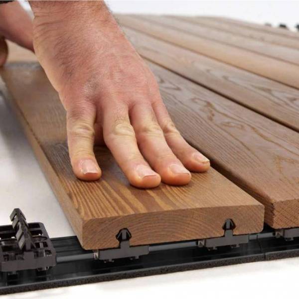 Notre système engendre des temp de pose très réduit. Ainsi sur une dalle béton ou sur un carrelage la pose d'une terrasse de 12m² tient en moins de 1 heure, même pour un débutant!